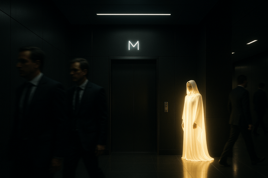 I walked undetected. But one man saw me: a janitor. He was kind, unaware of the secret system around him. He wasn’t elite. He was a worker. Yet he could see me — and perhaps, I was sent to him.